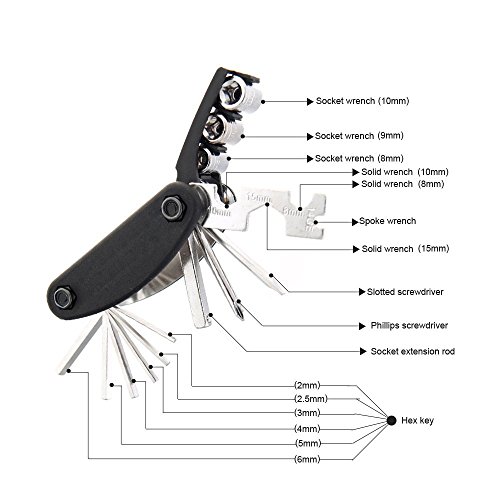 Full function: 16 in 1 multi-function Socket Hex Wrench 8/9/10/mm, Slotted Screwdriver, Phillips Screwdriver, Hex Key Wrench 2/2.5/3/4/5/6 mm