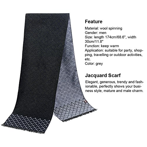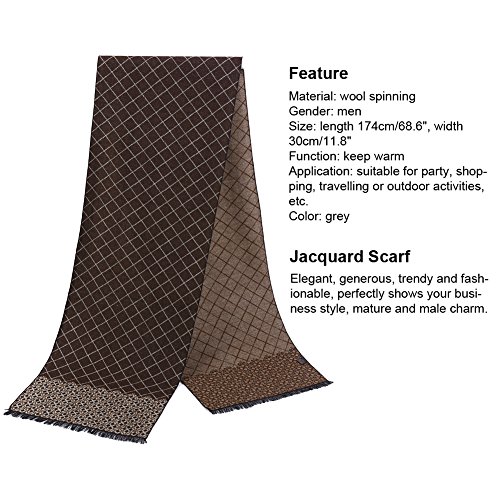Information Vbiger Men Classic Business Style Plaid Scarf- Highlights your good taste and male charm! Made of wool spinning, this scarf is very soft and comfortable to wear, and realizes well keeping warm property. If you want to know more details or have any questions, please look through the detailed page or contact the customer service. Feature Material: wool spinning Gender: men Size: length 174cm/68.6", width 30cm/11.8" Function: keep warm Application: suitable for party, shopping, travelling or outdoor activities, etc. Color: As the pictures show Package list: 1x scarf Notice * The actual color may vary slightly from the online image due to monitor color settings. * Please allow slight measurement deviation for the data. 0