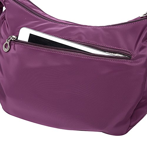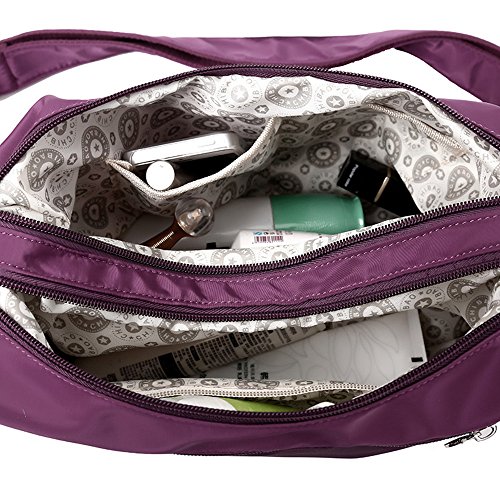 Large capacity for your convenience, 2 zippered main compartments, 2 interior multi-function pockets and a pocket with zipper to organize your essentials. 1 back zip pocket and 2 sides pocket, easy to store and carry all your necessities.