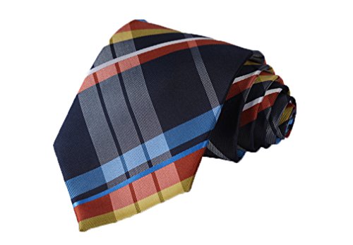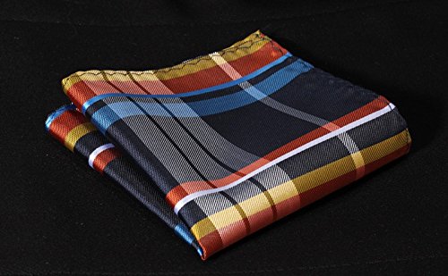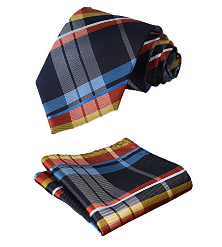Hisdern HISDERN Herren Krawatte Taschentuch Check Krawatte & Einstecktuch Set Blau & Orange