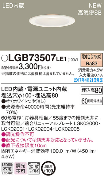 ●寸法(mm):埋込穴φ100・埋込高80