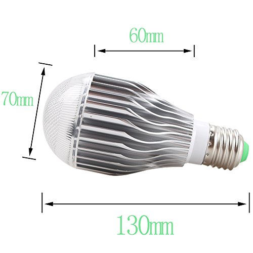 Product DescriptionSepcifications: Power: 10W Connect Type: E27/E26 Voltage: AC 85-265V Frequency range: 50-60Hz Material: Aluminium, plasticLife Span:50,000 hours Remote distance:26ft