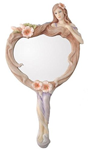 10.5 Inch Hand Painted Art Nouveau Poppy Lady with Vine Hand Mirror