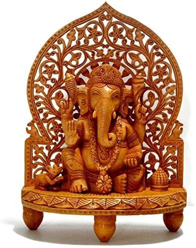 Large 1 Feet Ganesh Ganesha Idol Statue- Wooden Hand Carved Elephant Lord Ganesha Ganpati Temple Sculpture (10)