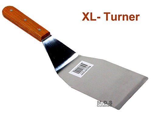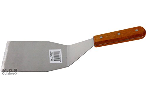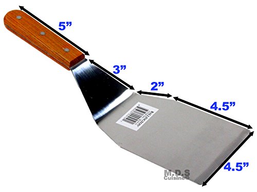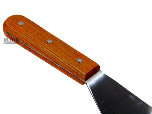 Studio : M.D.S Cuisine Cookwares Publisher : M.D.S Cuisine Cookwares Product Description This classic spatula features a wooden handle with triple riveted design and stainless steel construction. Perfect for making any meal, you'll love the way this spatula feels whether you are flipping pancakes or burgers.This turner will keep your hands a safe distance away from sizzling food, so that you won't get splattered by any hot grease.This large grilling spatula is perfect for taking a turn for the better with your cooking. Perfect for pancakes, eggs, hamburgers or any other grill-worthy food, this spatula will increase your cooking potential.This stainless steal spatula has a wooden handle, that gives it a sophisticated and stylish look. It's blade is 6 inches long 4.5 inches wide, making it the perfect size for flipping large or small foods.Colors/finish: Silver, brown Materials: Stainless steel, wood Quantity: One (1) Setting: Outdoor Blade length: 6 inches long x 4.5 inches wide Handle length: 4.75 inches long Dimensions: 13.5 inch x 4.5 inches wide 0