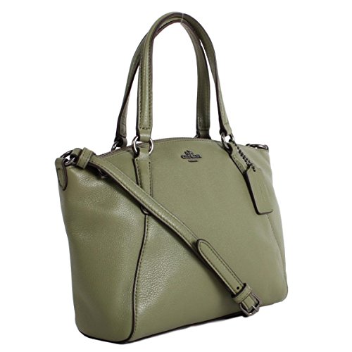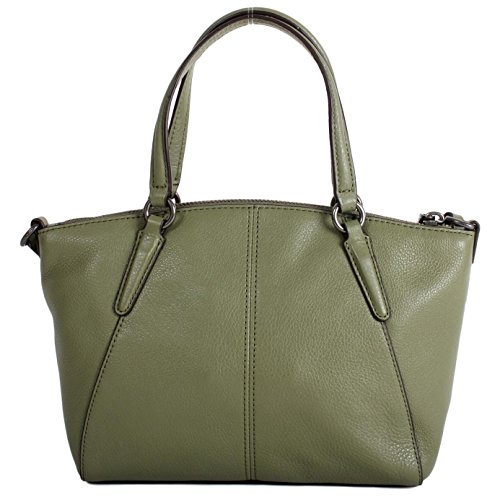 -. Brand : -. Color : Military Green -. Department : womens -. EAN : 0191202058804 -. Feature : This Mini Size / Silver hardware, pebbled leather / Zip top closure, fabric lining / Adjustable crossbody strap with approximate drop of 19.5-24.5"; dual leather handles with 4" drop / Approximate dimensions at widest points: 10.5" x 7.25" x 3.25" -. PackageQuantity : 1 -. ProductGroup : Shoes -. ProductTypeName : HANDBAG -. Title : Pebble Leather MINI Kelsey Satchel Crossbody Handbag, F57563 Military Green -. UPC : 191202058804