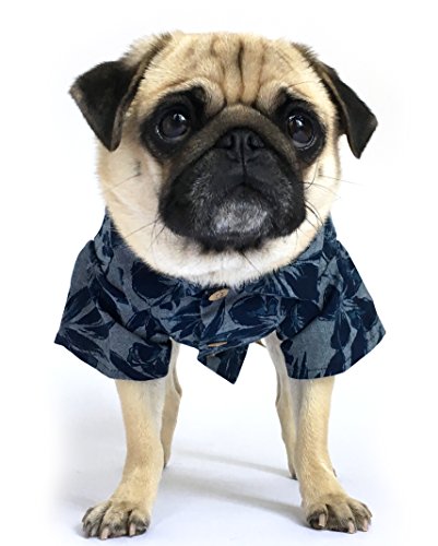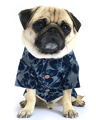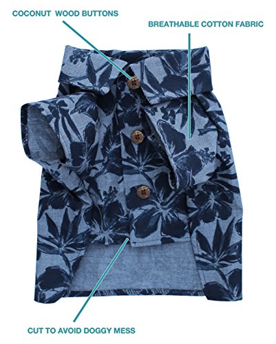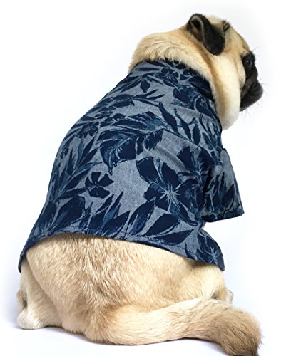 Product Description A dark blue floral print denim button down dog shirt featuring coconut buttons and a perfected fit. Fashion for dogs by Dog Threads. Stylish and cute dog clothes. Hipster dog clothing. Button down dog shirts. Quality, made in the USA dog shirts. 0