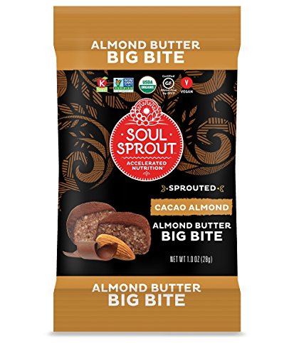 Soul Sprout by Two Moms Organic Sprouted Raw Almond Butter Big Bite, Cacao, 1 Ounce (12 Count)