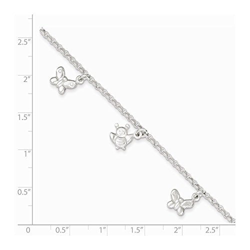 -. Title : Sterling Silver Polished Dangling Butterflies & Bumble Bee Anklet Length 10 Inch With Lobster Clasp