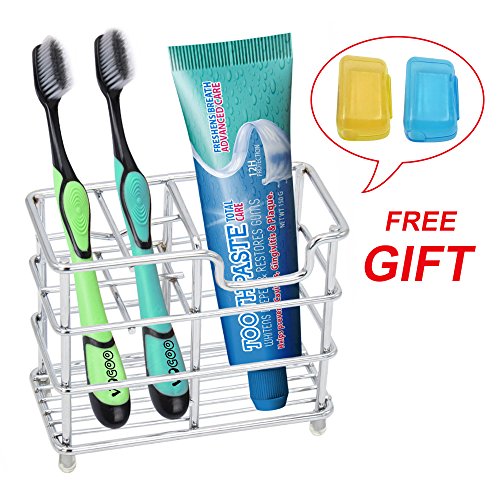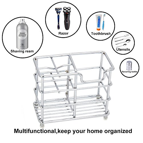 This Stainless Steel, non-rust toothbrush holder has space for four ordinary toothbrushes that fits both ordinary and electric toothbrushes in the 4 compartments and Toothpaste, razors and shaving creams in the second.