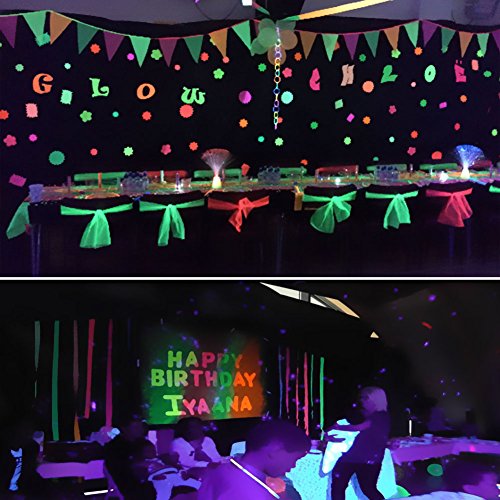 - Easily creates blacklight ambiance at halloween, christmas, birthday parties or wedding, church.