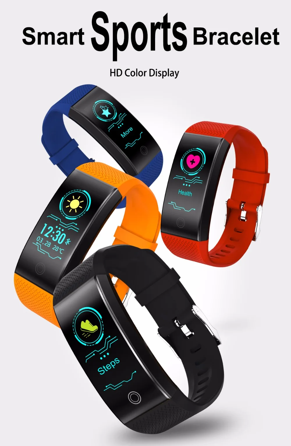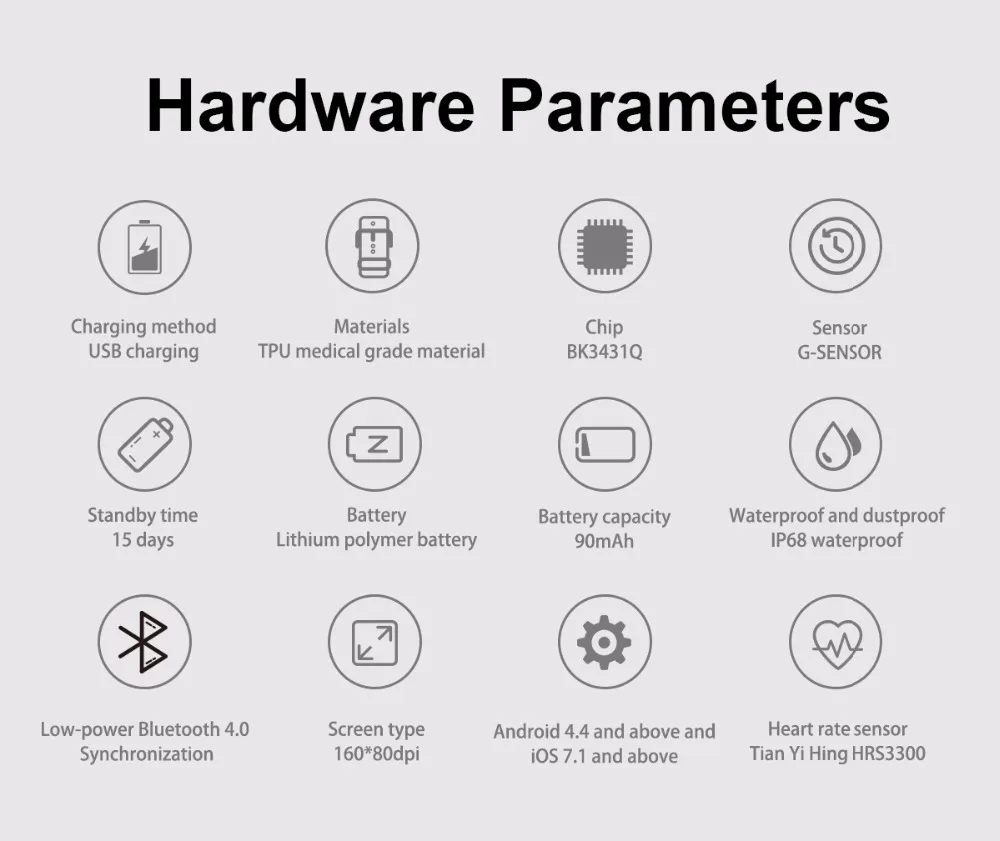 Feature:Sleep Tracker,Mood Tracker,Call Reminder,Message Reminder,Heart Rate Monitor,Fitness Tracker,Bluetooth