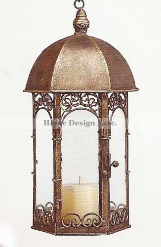 -. Feature : Item: Candle Lantern / Design: Victorian Gazebo / Size: 17.5" tall x 10" diameter. Includes 14" chain. / Material: Iron, Tole, and Glass. Use: Indoor or Outdoor Use. / Condition/ Quality: Brand New, First Quality.