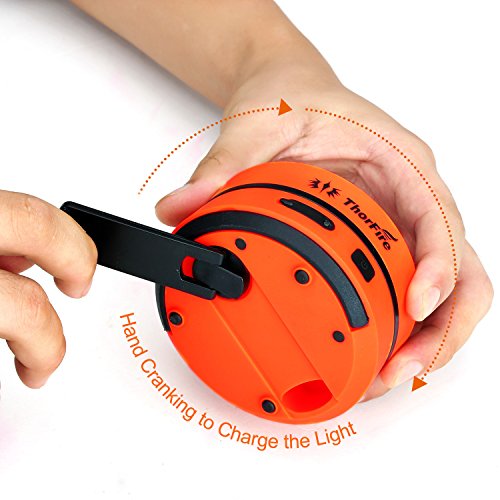 Built in Rechargeable Batteries,stop wasting your money and never buy batteries again. Hand Crank Rechargeable: Can be either charged via regular 5V USB charger or hand cranking when you are out of power supply.