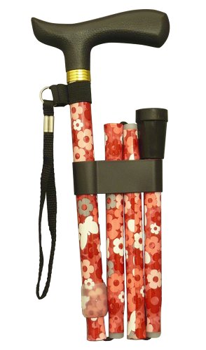 -. Title : RQステッキ エコノミータイプ 折りたたみ式 花柄レッド