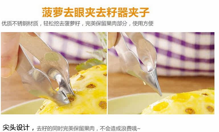 (1套3个)优质不锈钢菠萝去眼夹菠萝去籽起钉刀创意厨房小工具菠萝去籽夹子