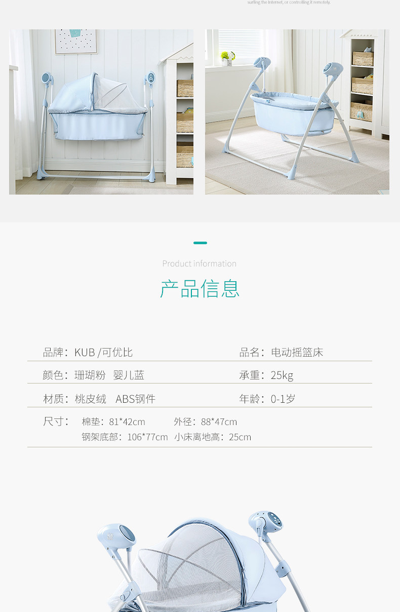 KUB可优比电动摇篮床婴儿床宝宝摇摇床新生儿电动智能哄娃神器