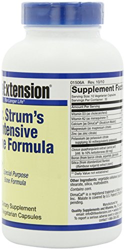 -. Binding : Health and Beauty -. Label : Life Extension -. Manufacturer : Life Extension -. ProductGroup : Health and Beauty -. ProductTypeName : HEALTH_PERSONAL_CARE -. Publisher : Life Extension -. Studio : Life Extension -. Title : Life Extension Dr. Strum's Intensive Bone Formula Vegetarian Capsules, 300-Count
