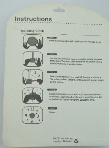 - Feature : Roman numbers are made of foam. All pieces are self adhesive for easy sticking. / Just use your creative ideas & imaginations, you can scale the size of wall clock to fit your space perfectly. You can place it as round, rectangle or oval shape clock. / Requires one AA battery (not included). Replacing batteries is very easy. / Excellent house warming gift which is remembered every time it is seen at!
