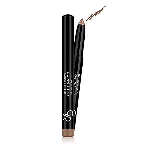 Applying your eyeshadow makeup just got easier with Golden Rose's Longstay Eyeshadow Stick. Our long stay shadow is creamy so it glides on smooth and provides excellent coverage. There is a retractable twist mechanism that makes sharpening your eyeshadow pen super easy. And because of the tip design, our eyeshadow crayon can double as an thick eyeliner pencil. Talk about value! This creamy eyeshadow stick won't crease or fade and is waterproof. Our Waterproof Eyeshadow Stick is very blendable. It blends great with other cream eyeshadows and can even be blended with powder eyeshadow. Try a color close to your skin tone for a crease-free base under powdery pigments. Available in 5 colors: 01 Gold Blitz, 02 Gunmetal, 03 Pinky Nude, 11 Khaki Brown, and 12 Nero (black). Dermatologically and ophthalmologically tested. Paraben-free. Not tested on animals. Apply cream eyeshadow effortlessly with Golden Rose Waterproof Eyeshadow Stick. Buy now!Feature