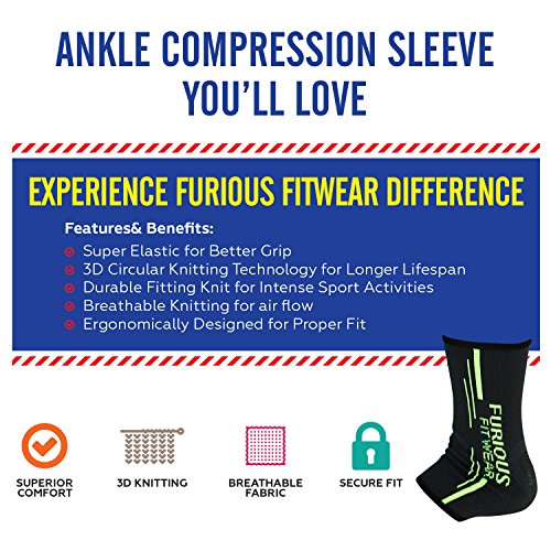 -. Feature : TARGETED COMFORT FOR YOUR ANKLE - Four-way stretch material with 3D Weaving technique ensures Right Compression, Proper Protection & Rehab Support for pain, inflammation, stiff, weak & sprained Ankle Stability or Injury Prevention, relief support for tendonitis and muscular discomforts by improving blood circulation with Extra Padded Support around Ankle Joints / GREAT FOR EVERYDAY WEAR - Designed to provide Right Compression on the soft tissues so that you can wear it every day for long hours and not worry for the roll or slip during the continuous use (SELECT RIGHT SIZE BY REFERRING TO SIZING CHART & CONTACT US FOR IMMEDIATE REPLACEMENT) / AMAZING BRACES FOR ANY SPORT - Fabric is breathable, washable, extremely flexible and easy to maintain providing you full ankle joint mobility for any sport e.g. running, jogging, walking, biking, soccer, football, yoga, basketball, volleyball, baseball, skiing, tennis, golf, gym & other sports / DESIGNED FOR BOTH MEN & WOMEN - Support Ankle Recovery for Soreness, Bursitis, Tendonitis, Muscle Stiffness, Joint Soreness, Arthritis, Osteoporosis, Heel Spurs, Achilles Heel, Plantar Fasciitis, Muscle Strains, Bruises & Sprains / REFER SIZING CHART BEFORE BUYING & CONTACT US FOR ANY SIZING ISSUE - We are Standing By to Help You as Furious Fitwear products are ALWAYS covered under 60-Day Hassle Free Warranty!