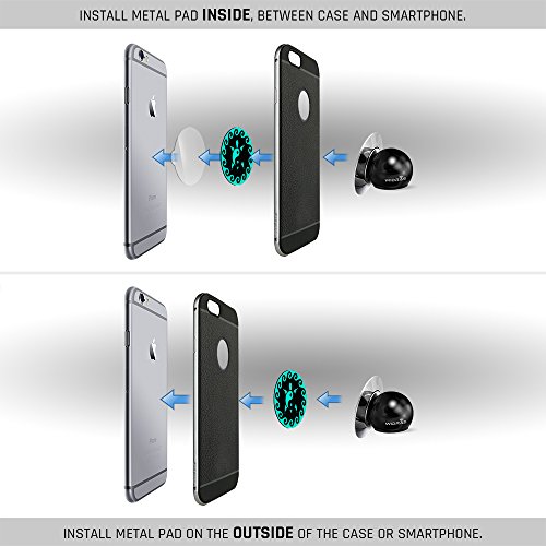 b.The Metal pad discs can be installed directly on the back of the phone or case. Also metal pads can be installed under the case of your device.
