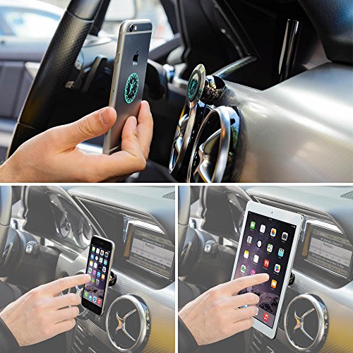 ULTRA STRONG MAGNET Phone Holder for Car or Home - Can hold all the phones and tablets on the market, including iPhone Plus, Mini iPad, Galaxy Note, Samsung Tablet or other similar size devices. Easy attachable to smooth, flat surfaces.