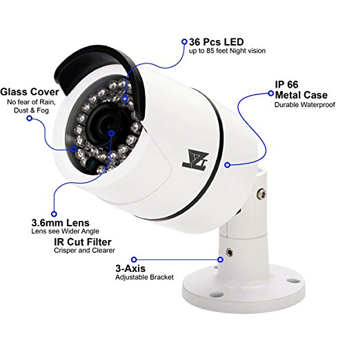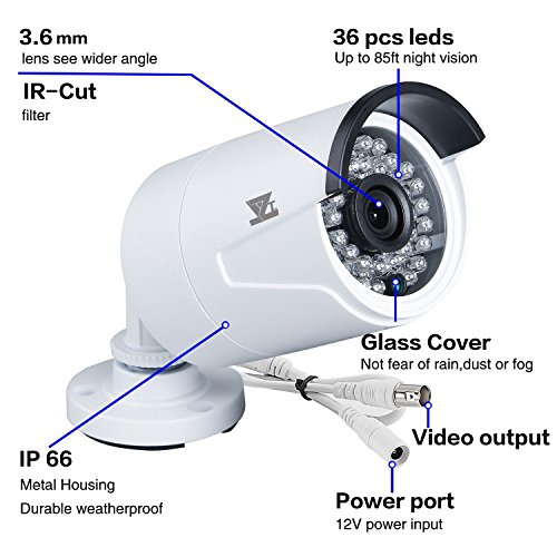 -. Title : Home Security Surveillance CCTV Camera - JZTEK 1/3" CMOS 720P 1MP Weatherproof 36 Led 3.6mm Lens Wide Angle Bullet Camera with IR Cut-85ft IR Night Vision Distance, Aluminum Alloy Housing Silver