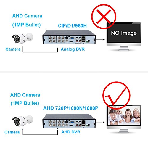 -. Feature : Updated 720P/1.0MP High Resolution Camera. Seeing is believing with 720p HD Cameras perfect for close up detail such as license plates, facial detail, clothing colors & more. / 720P 1.0Mega pixel, 36pcs high-intensity infrared LEDs, 1/3inch 3.6mm lens 90 degree wide viewing angle, allows up to 30m/85feet IR Night Vision Distance; Built in IR-Cut filter. / IP66 Water-proof resistant housing can withstand the toughest outdoor conditions; Auto Gain Control (AGC), Auto Electronic Shutter (AES) and Back Light Compensation (BLC) for optimal picture quality in any given lighting condition. / This camera will only work perfectly in combination with 720P or above resolution HD Hybrid AHD DVR, like https://www.amazon.com/dp/B01LWZ3OLR. / Requires BNC and 12V/500mA AC to DC power cable/ split power cable.(Not included, please search https://www.amazon.com/dp/B01MFXNYJY)