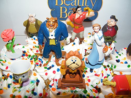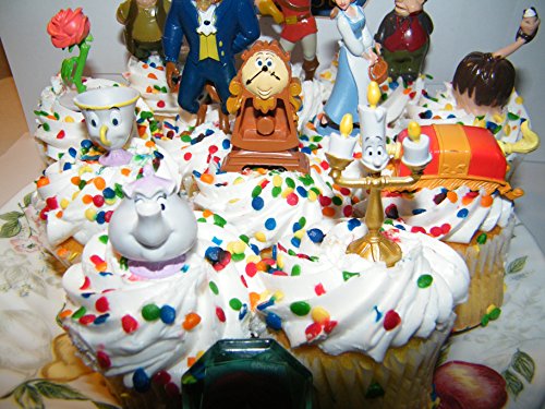 Disney Beauty and the Beast Deluxe Mini Cake Toppers Cupcake Decorations Set of 14 with Figures, a Sticker Sheet and ToyRing Featuring Belle, the Prince Beast, Chip and More!