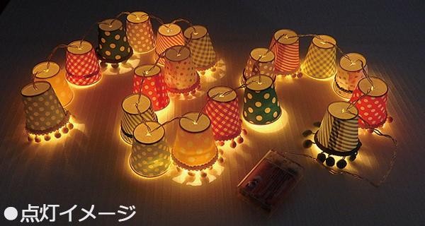 | ポップな柄のカップにLEDライトがついた、オシャレなガーランドタイプのLEDライトです。LED電球は点滅しません。 |