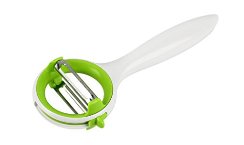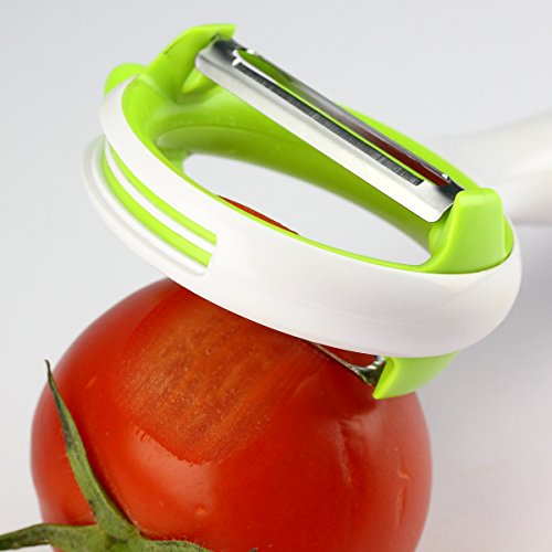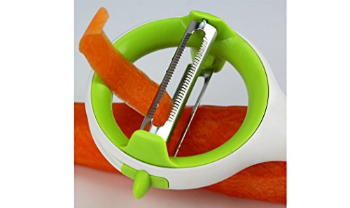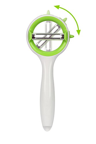 SERATED & STRAIGHT BLADES: The multi peeler has both serrated and straight cutting blades for soft and hard skinned fruits and vegetables that allow you to strip the peels and skins off easily, and making food preparation fun and quick.