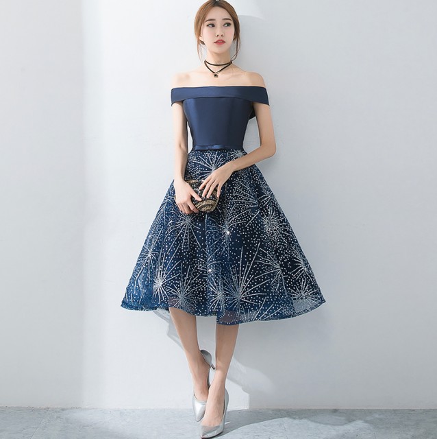 デコルテを美しく演出するオフショルダ―タイプ。