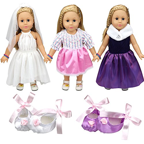 -. Feature : Package: 3* Different Dresses + 2*Satin Shoes + 1*Shawl + 1*Veil (Dolls are not Included) / Materials: High Quality Fabrics and Cotton, Easy to Put On, Machine Washable. / Delivery: Fulfillment by Amazon, Get It in 1-3 Days! / Fits For 18 Inches Doll Perfectly (including American Girl Dolls, Madame Alexander My Life As Doll, etc.) / Appeared Well Made and Quite Cute,Christmas Gift and Birthday Gift for Children, Especially Little Girls. Suitable for Parents to Do Some Parenting Practice and Helpful for Children to Develop a Good Habit of Self-reliance.