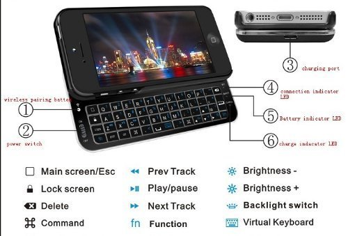 - Title : Bluetooth Wireless Qwerty Keyboard Sliding Case for iPhone 5/5S - Backlit Rubberized Ships From USA