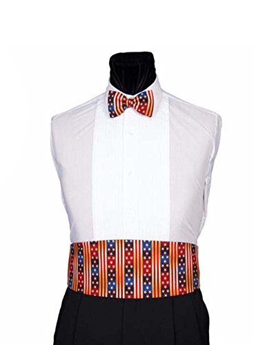 -. Feature : Red White and Blue Party Bow Tie and Matching Cummerbund Set / Both Items Adjustable to Size for Tailored Fit / Superior Craftsmanship and Made in the USA / Satin Material / Sold as Bow Tie and Cummerbund Set