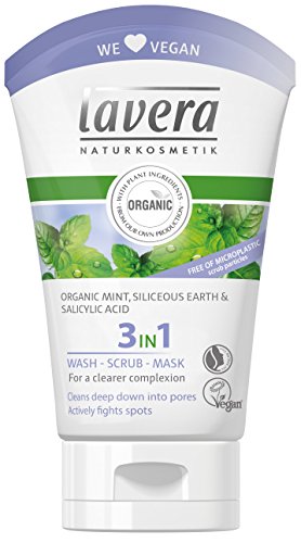 Lavera 3-In-1 Natural Facial Cleanser - Facial Wash, Scrub and Mask, Deeply Cleanse Skin - Anti-Blemish and Oilness, Organic, Vegan (125ml/4.1oz)