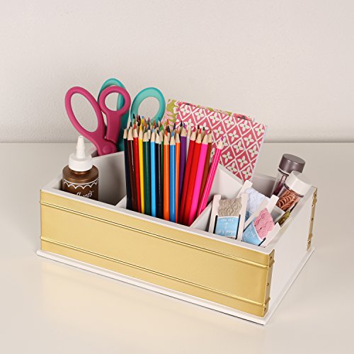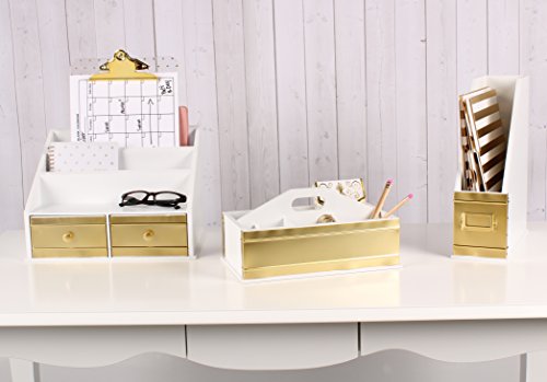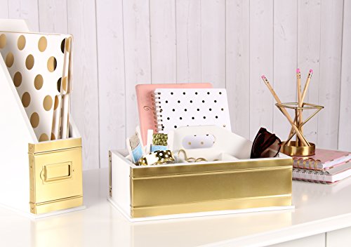 Kate and Laurel Industrious Desktop Office Supply Caddy Organizer, White and Gold