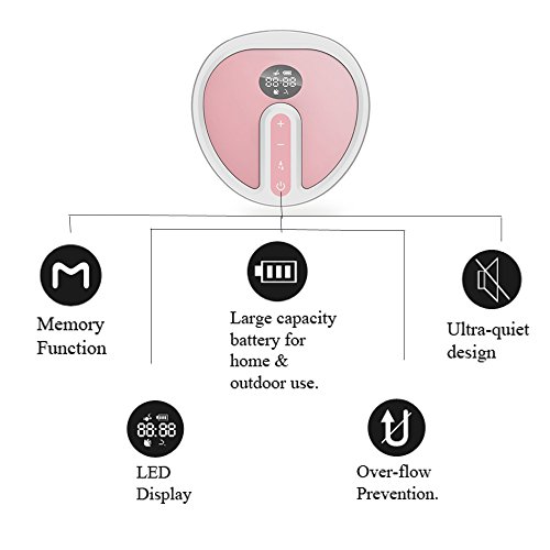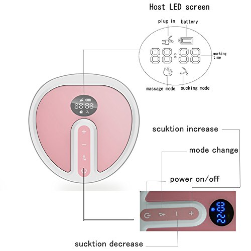 -. Feature : ✿Fashional Touch-key; Design of silent mode; With stimulation design on breast cushion; / ✿Two modes Design Stimulation and Expression Modes -Switch the mode button between Massage and Suction ; / ✿With Backflow prevention patent in protection settings; / ✿9 level's suction (120mbar-450mbar) to help avoid nipple discomfort / ✿Low noise design that reduces the offensive operating noise to minimum