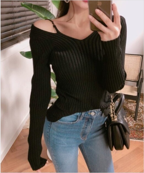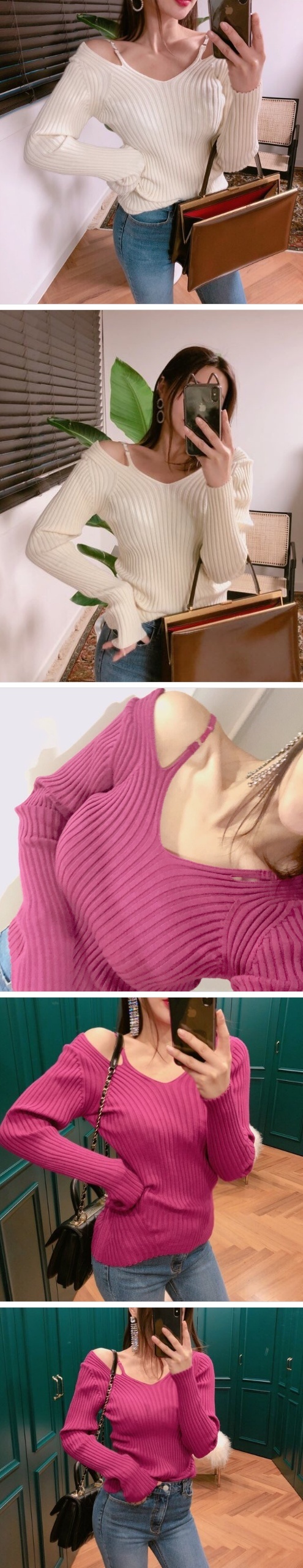 Women`s Cold Shoulder Ribbed T-shirts Pink Black Ivory