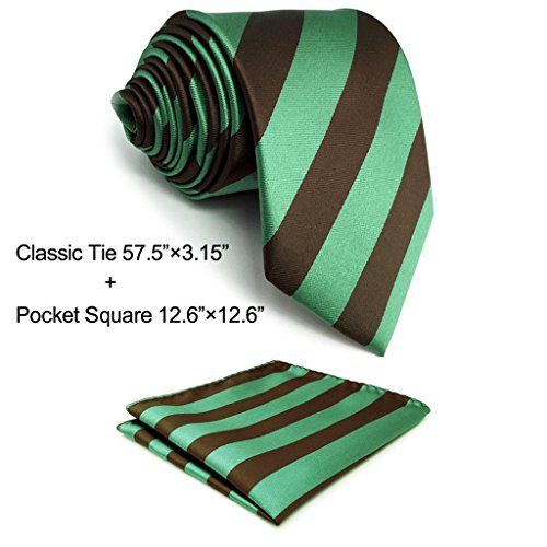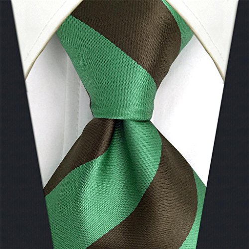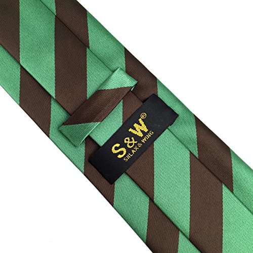 | ShlaxWing New Stripes Brown Green Mens Ties Business Necktie Fashion XL Extra Long |