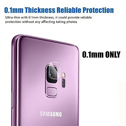 -. Feature : Soft Tempered Glass Camera lens protector for Samsung S9 , anti-dust,anti-scratch,anti-water. / 7.5H hardness which can effectively protect your Samsung S9 camera lens from unwanted scuffs and scratches by knife, keys and some other hard substances. Coated with hydrophobic and oleophobic clear layers, the glass protects against sweat and oil residue from fingerP.R.Ints, keeping your Samsung S9 camera clear. / High transparency, does not influence you take a HD photo. / Come with wet wipe cloths kit and dust stickers to let you clear your Samsung S9 camera lens. / it won't ruin its original look. And easy to install,just stick the protector on your camera lens.