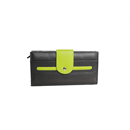 Product DescriptionLeather purse with tab and stud feature. 13 credit card slots. Internal slip pockets. Front pocket. ID window. Note section. Full zip around purse on rear. Size: 7 x 4in.0