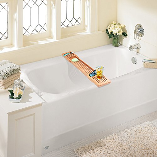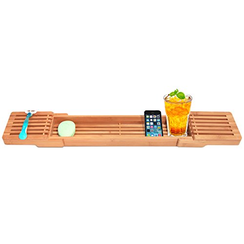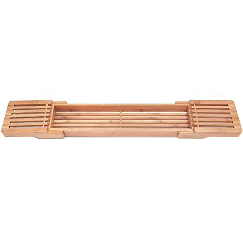 Adjustable Bamboo Bathtub Caddy by ToiletTree Products.