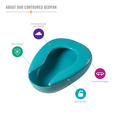 YOUR BEDPAN IS DESIGNED FOR COMFORT AND CONVENIENCE with it's smooth, countoured shape.