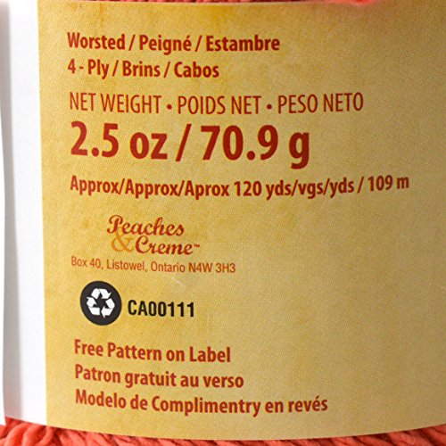 Peaches & Creme (Cream) Cotton Yarn Ocean Coral 2.5 oz. (Coral Orange)