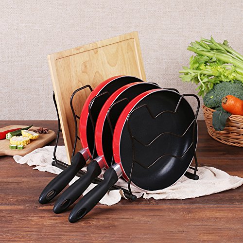 [ New and Improved ] Pan and Pot Lid Organizer Rack, Bronze, 5-Tier Cookware Holder for Cabinet Worktop Storage, Lauchuh