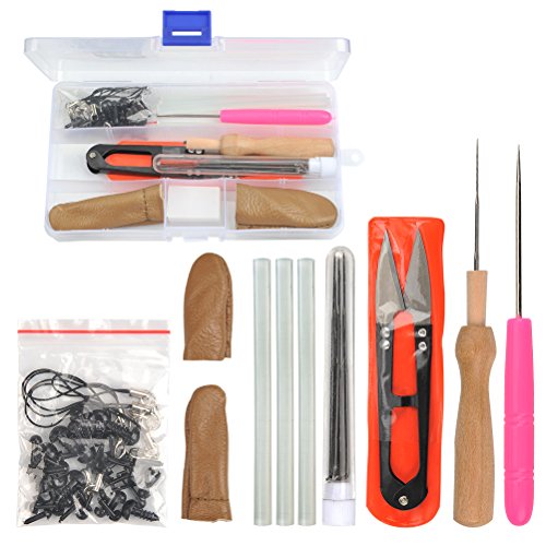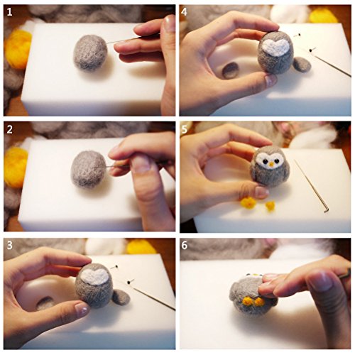 - Felting Kits Include: 1pcs Foam Mat, 6pcs Felting Needles, 2pcs Leather Finger Cots, 1pcs Wooden Felting Tool, 1pcs Awl, 3pcs Transparent Glue Stick, 1pcs Scissor, 1pcs Free Storage Plastic Box, 1pcs Plastic Bottle, 5pcs Phone Lanyard, 10pcs Safety Eyes, 10 Safety Noses