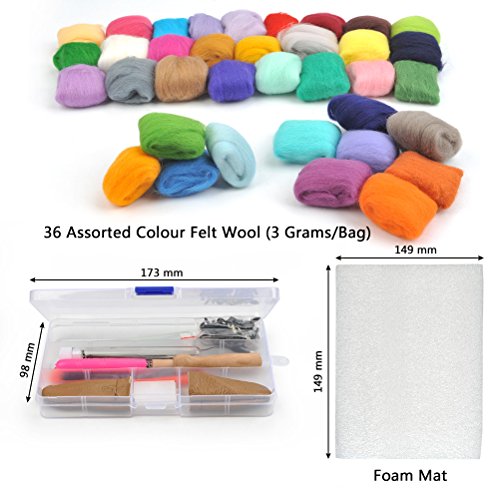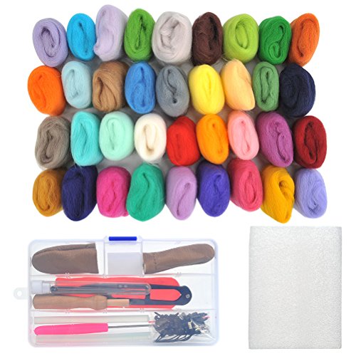 WOWOSS 36 Colors Needle Felting Wool Set Starter Kit Wool Felt Tools