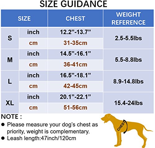 6. Available in Various Size Including S,M,L,Extra-Large. Our adjustable dog harness is suitable for small dogs and medium dogs, such as Chihuahua, Toy poodle, Pomeranian, Yorkshire, Papillon, West Highland White Terrier, Corgi, and puppies of most breeds.